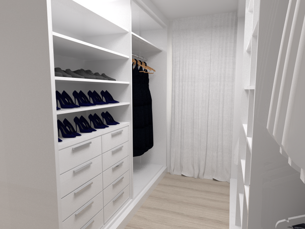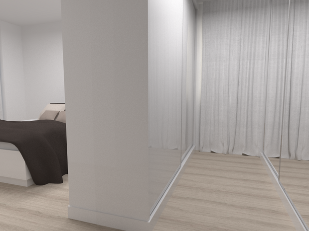 Para este apartamento destinado a locação, projetamos a cozinha utilizando a bancada de granito existente, Churrasqueira, Área de Serviço, Closet e Banheiros.
