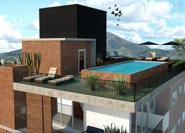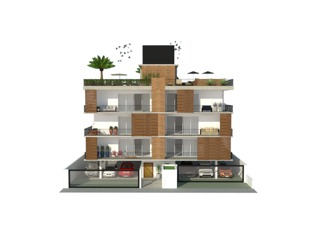 Neste projeto de edifício em Bombinhas, desenvolvemos uma proposta adequada ao plano diretor da cidade com características que trazem conforto e charme ao prédio. Na fachada, propusemos a utilização de brises móveis, que além de trazer fluidez para o edifício, resultam em maior conforto térmico, uma vez que podem ficar dispostos em diferentes localizações. As grandes janelas trazem iluminação natural e diferentes visuais. A varanda integrada também proporciona mais amplitude para o apartamento. Além disso, um dos diferenciais está localizado na cobertura do edifício: a área comum. Com aproximadamente 280m², o terraço-jardim proporciona vista panorâmica tanto para mar de Mariscal como para o mar de Canto Grande. O espaço conta com piscina, deck, solarium, além de espaços de integração, lazer e contemplação.